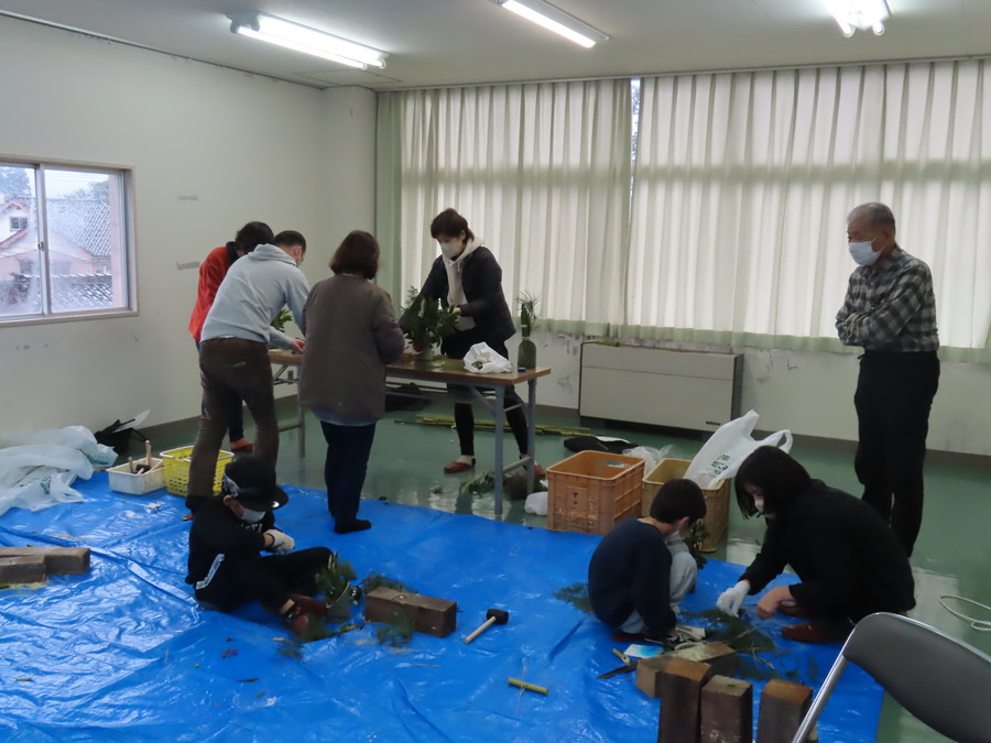 親子、個人を含め12名の方が参加し、高さ30cm程のミニ門松づくりに挑戦しました。