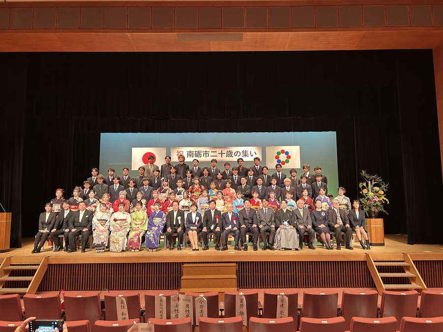 令和8年南砺市「二十歳の集い」は、予定通り開催され、城端地域全体の対象者81名のうち65名が出席し、城端地区は12名の出席でした。