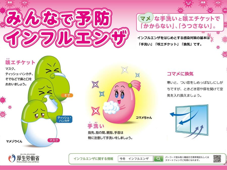 感染予防及び感染拡大防止のため、「手洗い」「換気」「マスクの着用を含む咳エチケット」「体調不良の場合は外出を控える」など、予防対策の徹底に心掛けましょう。